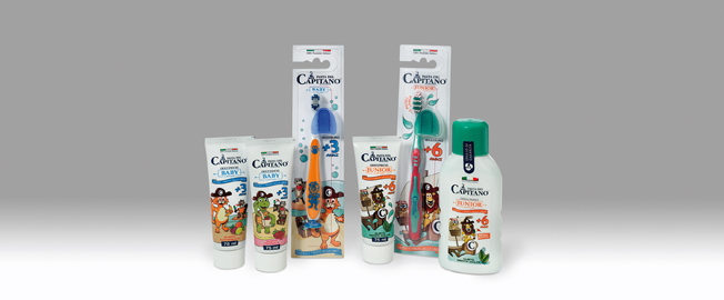 Η νέα παιδική σειρά στοματικής υγιεινής για παιδιά Pasta del Capitano περιλαμβάνει δύο οδοντόπαστες Baby 3+ ετών —μία με γεύση Tutti-Frutti και μία με γεύση Φράουλα— και μία οδοντόπαστα Junior 6+ ετών με απαλή γεύση μέντας. Και οι τρεις οδοντόπαστες έχουν πολύ χαμηλό δείκτη διάβρωσης.